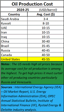 There is another problem that the US has been trying to conceal. It is one of the most expensive producers of oil. This is why the US cannot tolerate low-cost oil producers. At $50 a barrel many oil producers will be compelled to shut shop. The situation could become dire for the US if oil prices actually crash. Some media reports suggest that oil prices could crash to $30 a barrel. That could actually put many US plants out of business.