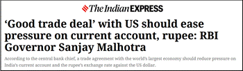 Really? India is compelled to stop importing cheaper oil from Russia. It is being compelled to purchase more expensive oil from the US. And is being coerced to purchase (extremely expensive) arms from the US (https://www.bbc.com/news/articles/cdeger2k625o). Yet, the RBI governor believes that the deal is good for India! One interpretation is that the RBI governor has adopted the role of a US trade champion, forgetting that central bank governors seldom adopt that role. The other explanation is eyeing a sinecure with the IMF or even the government of India. The fact is that India is rapidly losing its balance. The falling rupee is a good sign of things to come.